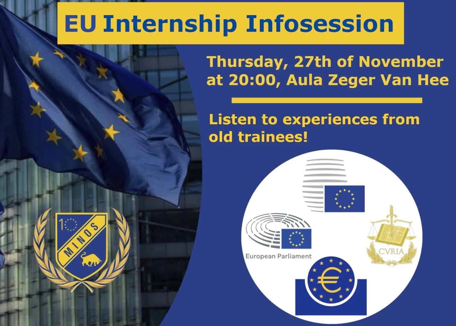 Op 27 november organiseerde Minos haar jaarlijkse inzichtrijke avond waarin de boeiende wereld van stages bij EU-instellingen verkend wordt. Onze gastsprekers - allemaal oud-stagiairs - deelden hun ervaringen, en gaven waardevolle tips en praktisch advies om te helpen bij het sollicitatieproces.